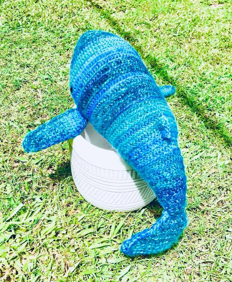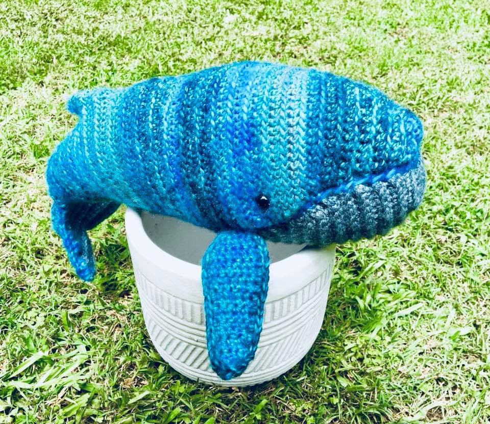 Completed crochet whale. Attaching all the pieces together was far more fiddly that I anticipated, but I was worth it.